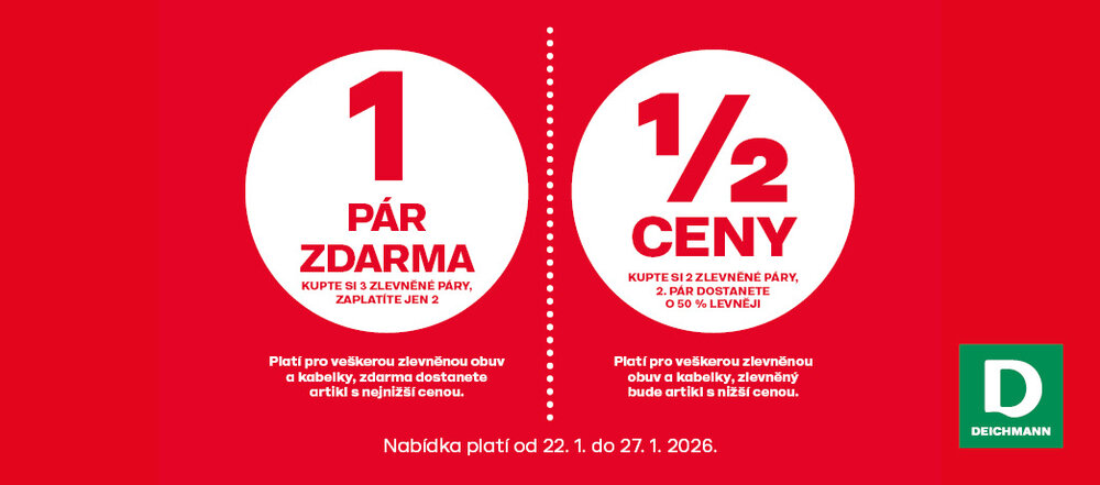 1 pár zdarma při koupi 3 zlevněných párů obuvi a 2. pár za polovinu ceny při koupi 2 párů zlevněné obuvi