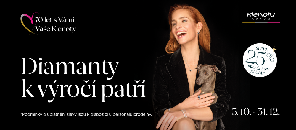 K příležitosti výročí naší značky jsme si pro členy Klenoty Klubu připravili slevy 25 %* na diamanty! Akce bude probíhat od 3. 10. do 31. 12. 2025.