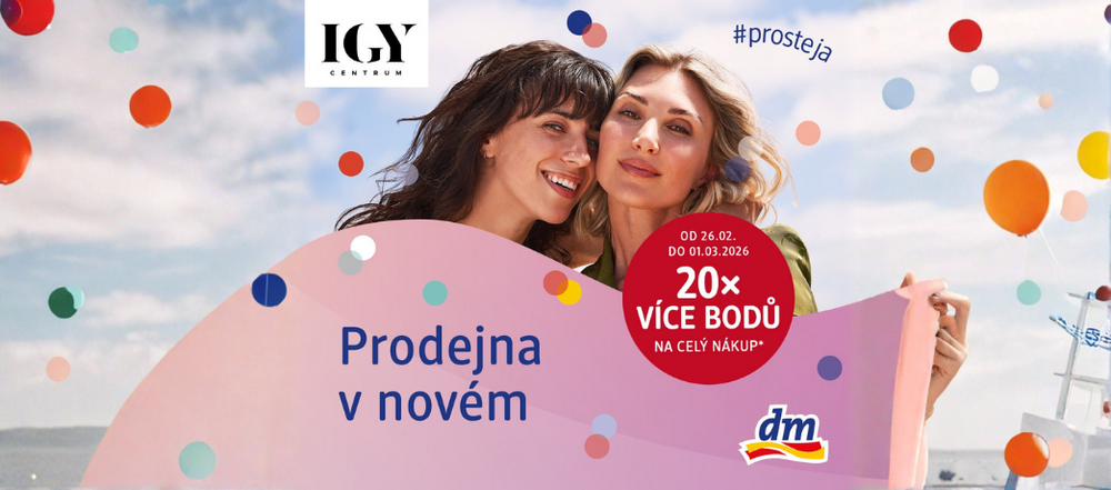 * Aktivita 20× více bodů na celý nákup je platná v období od 26.02.2026 do 01.03.2026 pouze v prodejně dm IGY Centrum, Pražská 24, České Budějovice.