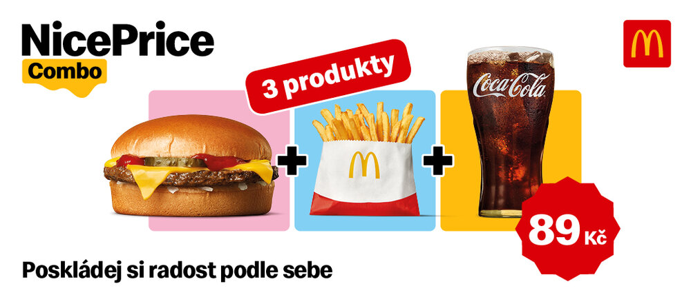 Nice Price Combo v McDonald’s vám naservíruje malé hranolky 🍟, malou colu 🥤 a k tomu jeden z burgerů, 4 ks nuggetek nebo Snack Wrap 🍔🍗 – to vše za 89 Kč. Stavte se ochutnat! 😎