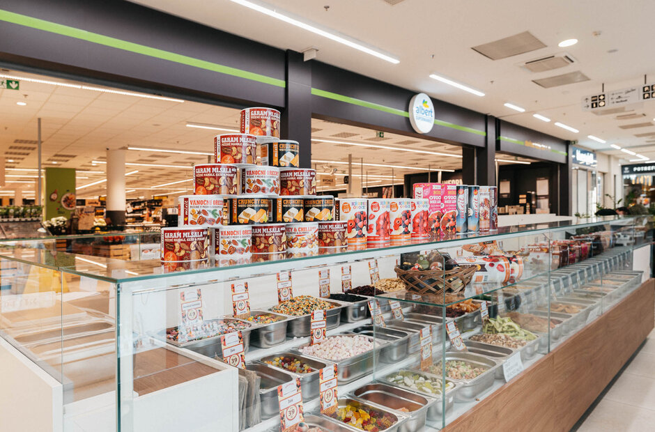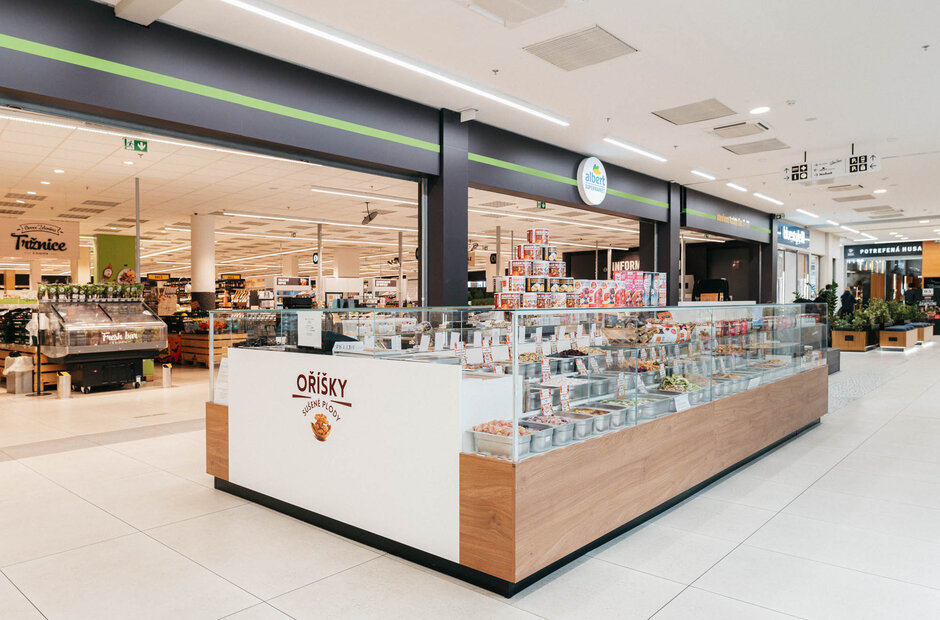 Široká nabídka oříšků, sušených plodů, cukrovinek a organických věcí.