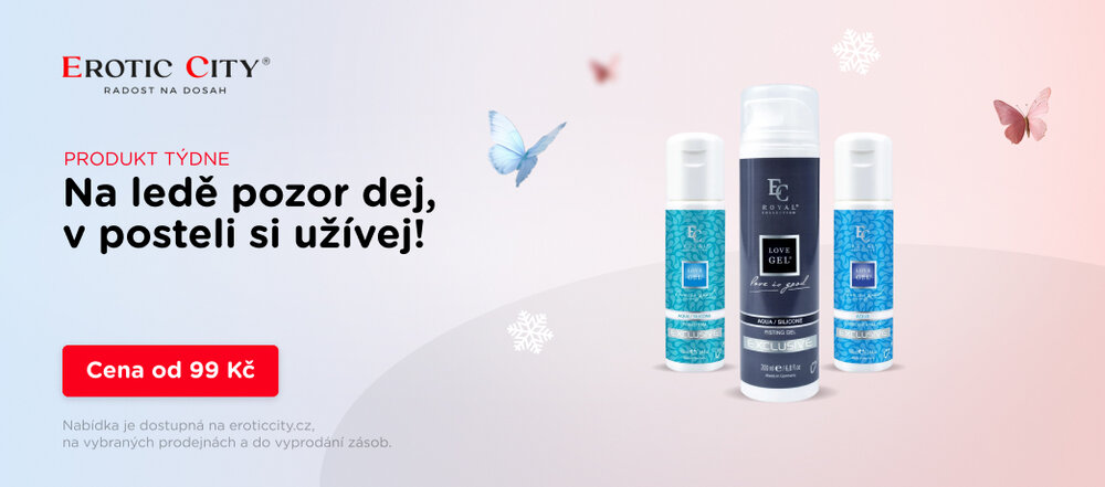 Produkt týdne – Love Gel Exclusive 1+1 za 99 Kč! Proměňte chladné zimní večery v žhavé chvíle s naší speciální nabídkou. Při nákupu jakéhokoliv lubrikantu z řady Love Gel Exclusive v prodejně Erotic City získáte druhý gel (Aqua/Silicone Fisting, Aqua Delay nebo Aqua/Silicone Porn Sperm) za pouhých 99 Kč místo běžných 299 Kč. Akce platí do vyprodání zásob nebo do konce února 2026. Navštivte naši prodejnu a dopřejte si zimní zahřátí!