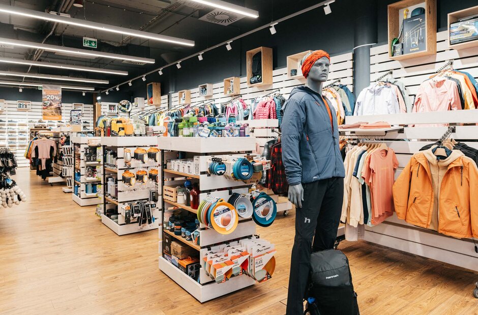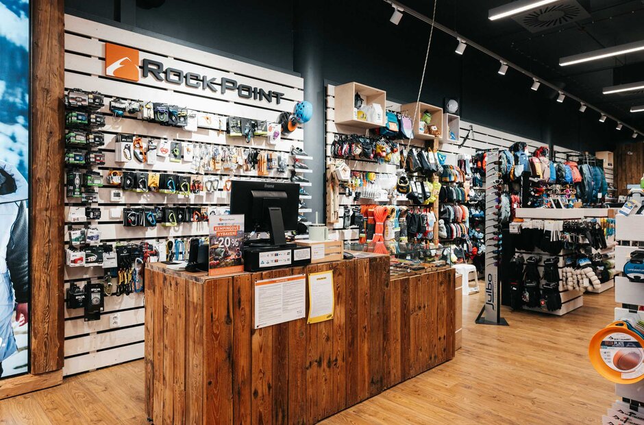 Prodejna s vybavením pro pobyt, pohyb i sportovní vyžití v přírodě. Široká nabídka oblečení a obuvi, kempingového (batohy, stany, spacáky, karimatky aj.) i lezeckého (úvazky, lana, karabiny, aj.) vybavení.