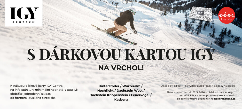 K nákupu dárkové karty IGY Centra na info stánku v minimální hodnotě 4 000 Kč obdržíte jednodenní skipas do hornorakouského střediska.