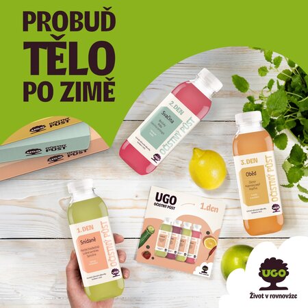UGO Očistný půst je šťavnatý program pro každého, kdo se chce vyhnout únavě a umožnit tělu efektivně využít jeho přirozené regenerační schopnosti. 9 dní stravování podle pravidel přerušovaného půstu kombinuje 3 dny na šťávách s 6 tzv. čistými dny lehkého stravování podle doporučeného jídelníčku.