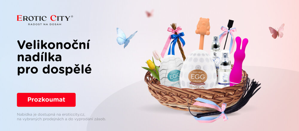 Velikonoční nadílka pro dospělé v Erotic City! Letos vám nadělí zajíček trochu jinak. Po celé velikonoční svátky připravujeme speciální slevy na vybrané produkty – od bičíků a důtek přes feromony až po vajíčka Tenga. Sváteční dny jsou přímo stvořené k tomu, abyste opustili každodenní rutinu a otevřeli dveře nezapomenutelným potěšením. Navštivte prodejnu Erotic City a nechte si poradit od našich specialistů!
