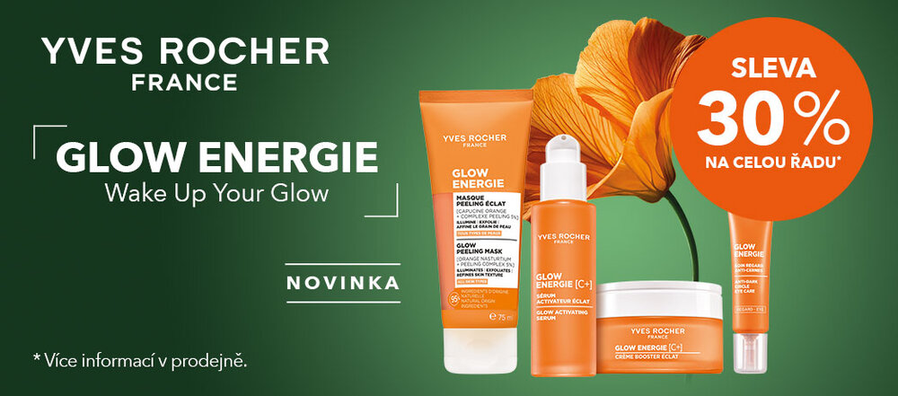 Nechte svou pleť zazářit! Přijďte do prodejny rostlinné kosmetiky Yves Rocher a objevte novou řadu péče o pleť Glow Energie. Produkty této řady s výtažkem z lichořeřišnice a dalšími aktivními látkami rozjasňují pleť, dodávají jí energii a redukují první známky stárnutí. Až do 2. 11. 2025 si navíc můžete tyto novinky zakoupit se slevou 30 %. Více informací v prodejně Yves Rocher a na www.yves-rocher.cz.