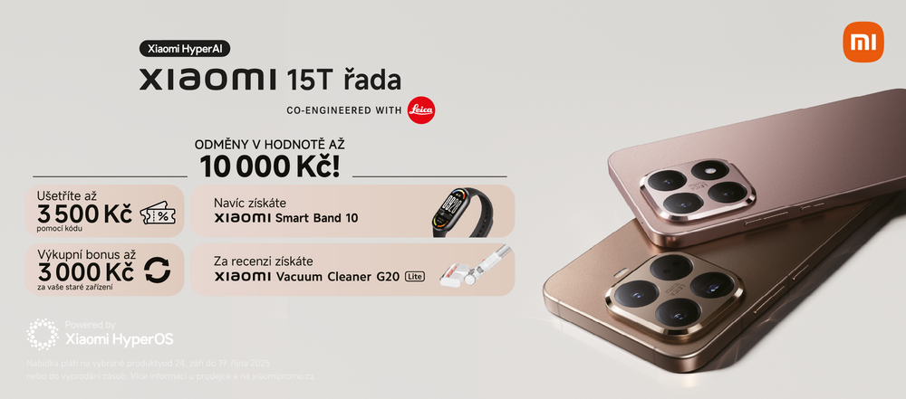 Nechte se nadchnout novou řadou mobilních telefonů Xiaomi 15T! Přinášejí pokročilou umělou inteligenci, optický objektiv Leica Summilux, prvotřídní displej i špičkový výkon – to vše zabalené do stylové elegance. K nákupu nyní získáte bonus až 3 000 Kč zpět na váš účet, a navíc vás za nákup a recenzi čekají skvělé dárky. Akce platí od 24.9. do 19.10. 2025 nebo to vyprodání zásob.